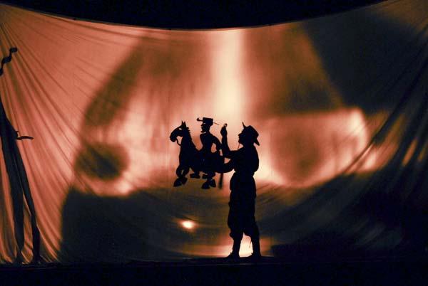 [12] “The result is a play on various levels: the silhouettes on the screen are accompanied by the candid technology of the play, by acting and by narration.” (REUSCH, Rainer. In: : http://www.schattentheater.de/files/englisch/geschichte/geschichte.php)
